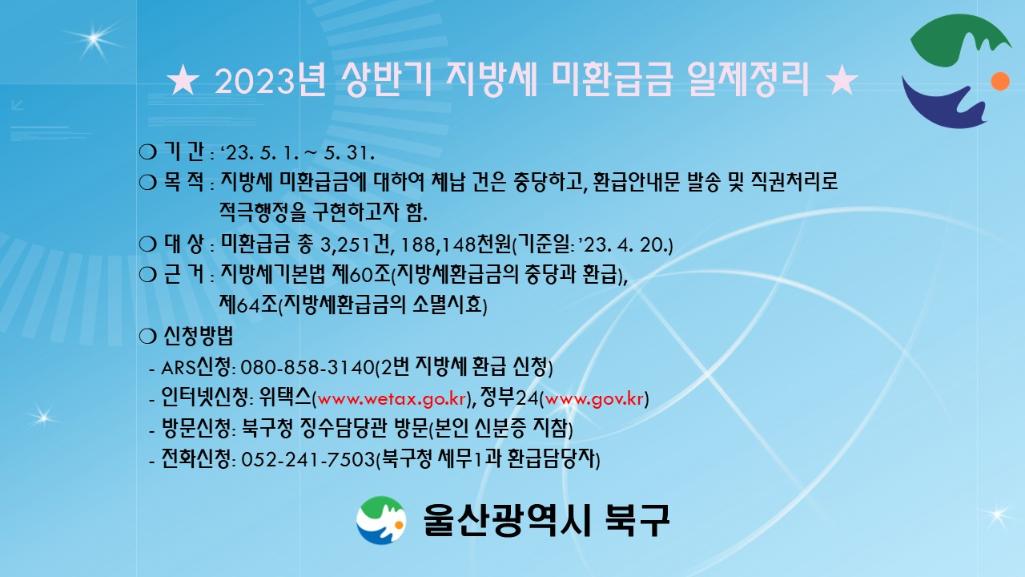 2023년 상반기 지방세 미환급금 일제정리