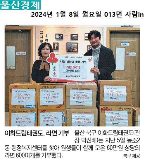 (24.1.5.) 이화드림태권도 - 농소2동 나눔냉장고 라면 기부