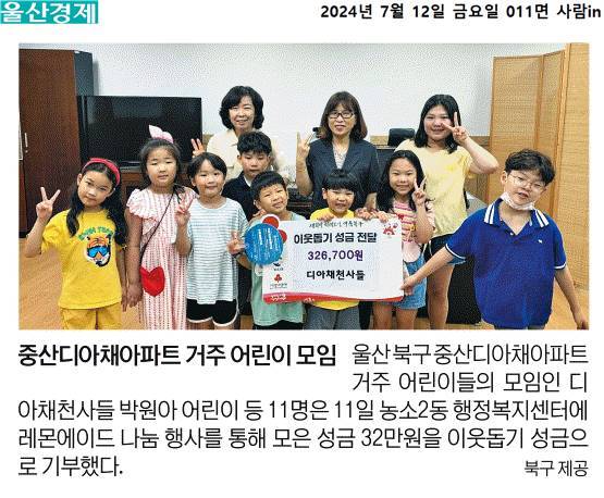 (24. 7. 11.) 디아채 천사들(박원아 외 10명) 농소2동에 이웃돕기 성금 기부