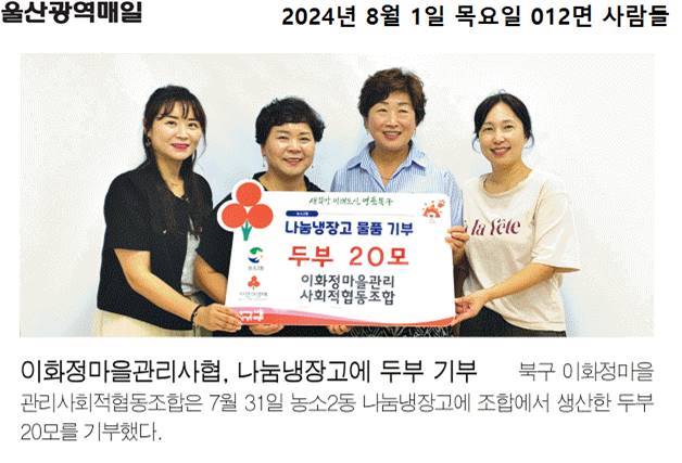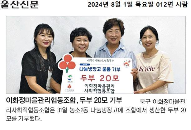 (24. 7. 31.) 이화정마을관리사회적협동조합 - 농소2동 나눔냉장고 두부 기부
