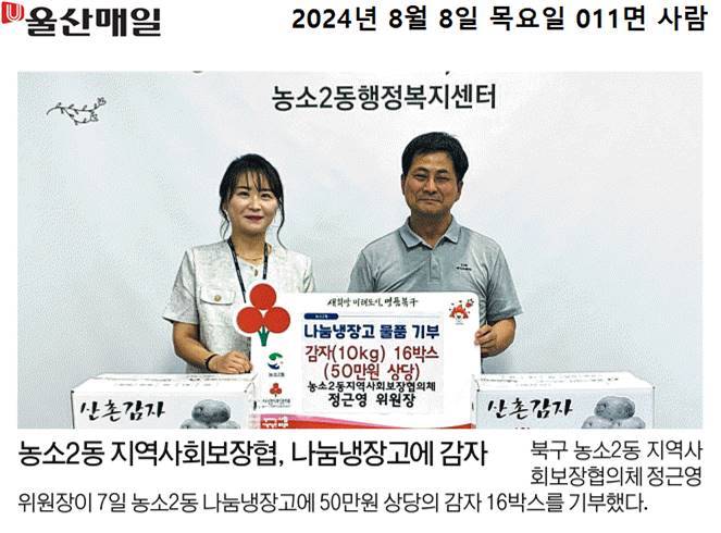 (24. 8. 27.) 농소2동 지역사회보장협의체 정근영 위원장 - 농소2동 나눔냉장고 감자(10kg) 15박스 기부