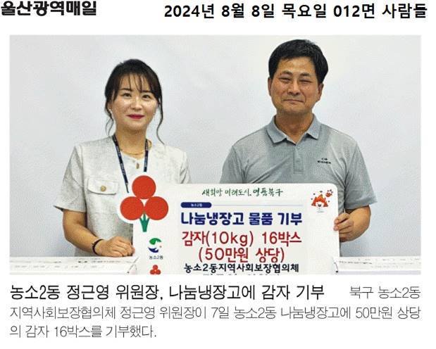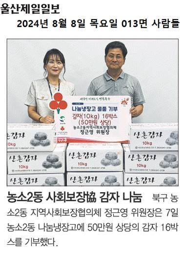 (24. 8. 7.) 농소2동 지역사회보장협의체 정근영 위원장 - 농소2동 나눔냉장고 감자(10kg) 16박스 기부