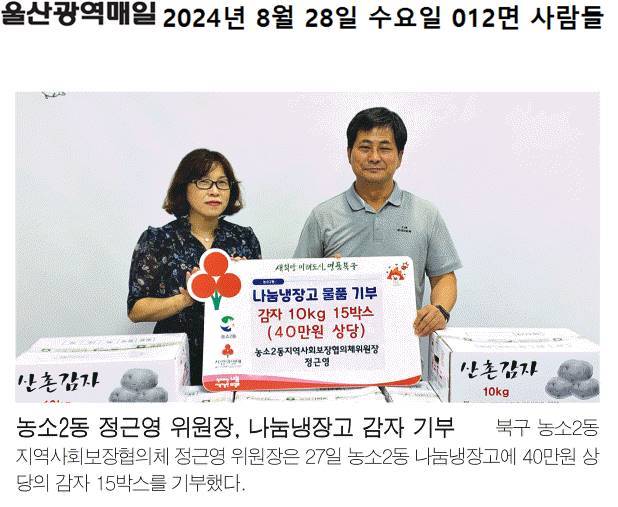 (24. 8. 27.) 농소2동 지역사회보장협의체 정근영 위원장 - 농소2동 나눔냉장고 감자(10kg) 15박스 기부
