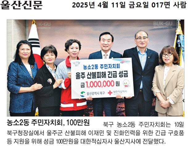 (25. 4. 10) 농소2동주민자치회, 울주 산불피해 긴급 성금 지원)