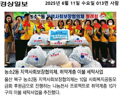 (25. 6. 10.) 농소2동지역사회보장협의체, 나눔천사프로젝트 이불 정기 세탁사업 추진
