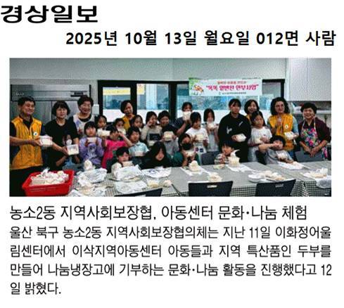(25. 10. 11.) 농소2동지역사회보장협의체 이삭지역아동센터 문화&나눔 체험