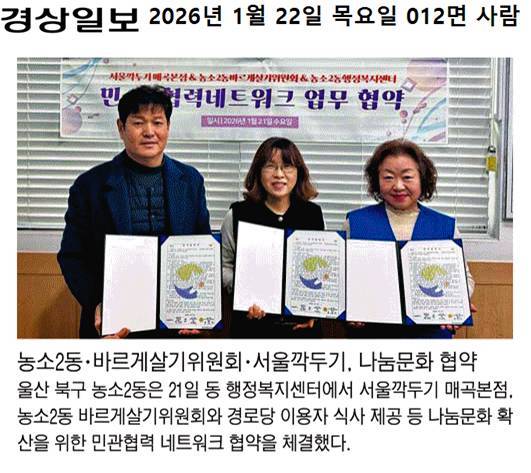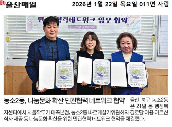 (26.01.21.) 서울깍두기 매곡본점, 농소2동행정복지센터, 농소2동바르게살기위원회 민관협력네트워크 업무 협약