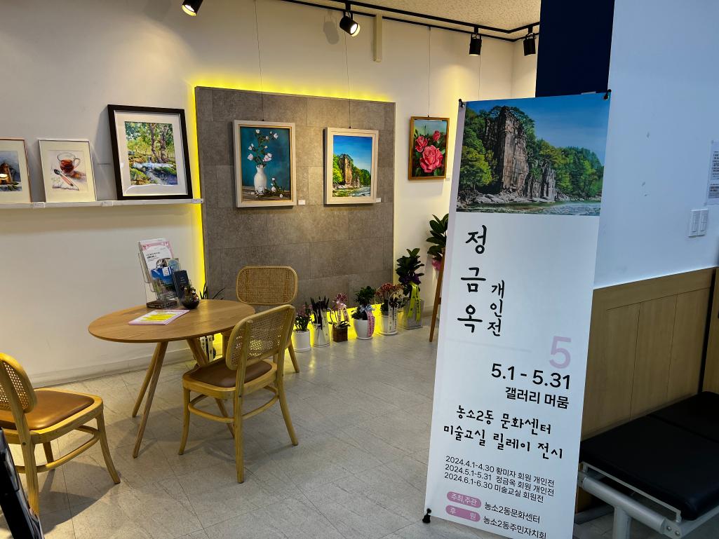 1. 전시일정 : 2024. 5. 1.(월) ~ 5. 31.(금) 2. 전시장소 : 농소2동 행정복지센터 1층 갤러리'머뭄' 3. 전시작가 : 정금옥 |