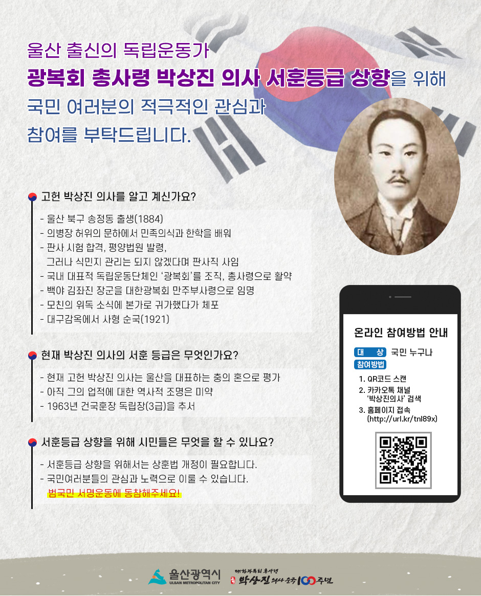 박상진 의사 서훈등급 상향 범구민 서명운동 안내