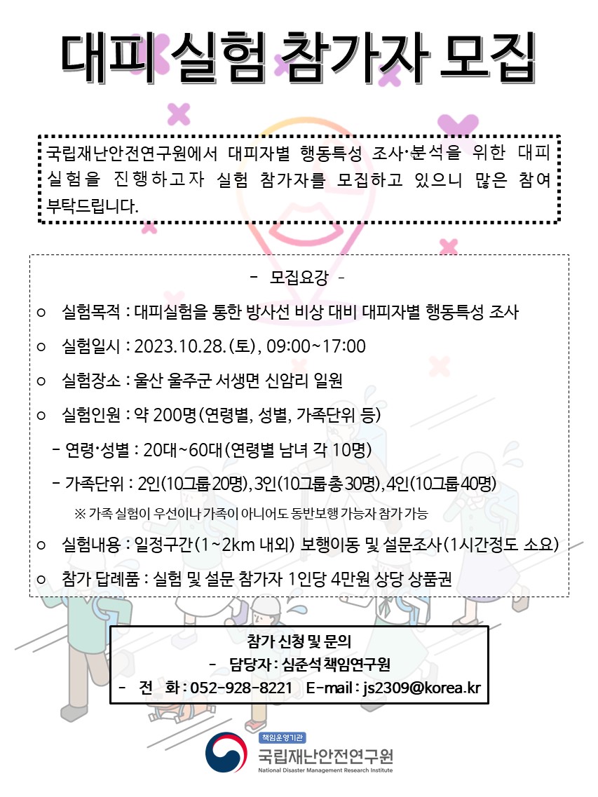 방사선 비상 대비 주민 옥외대피 실험 참가자 모집
