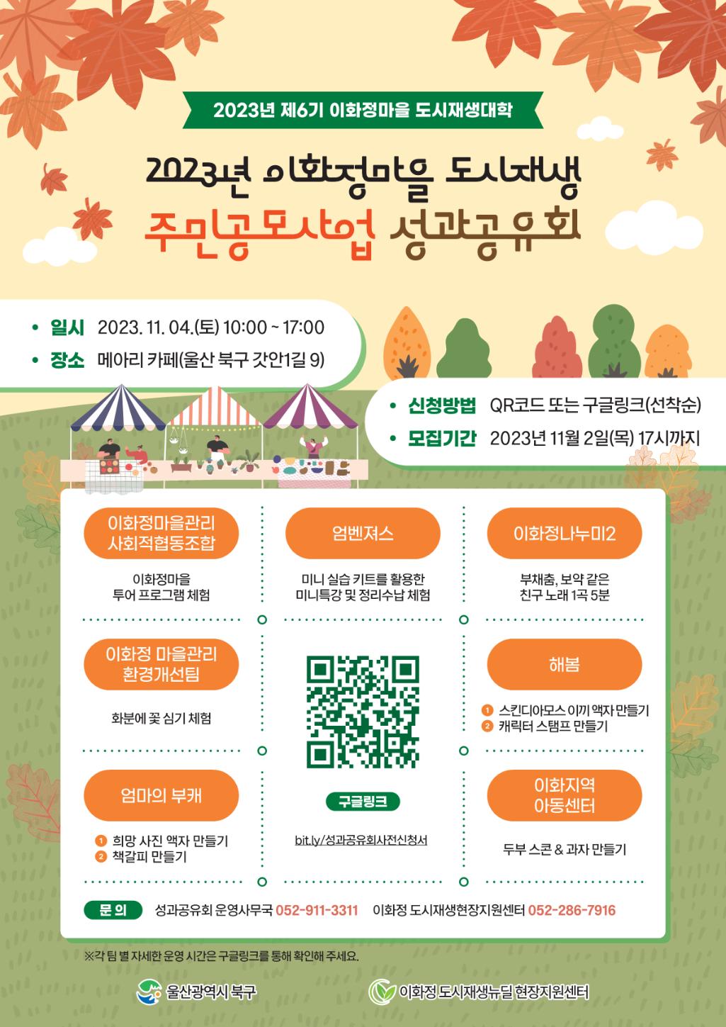 2023년 이화정마을 도시재생 주민공모사업 성과공유회 안내