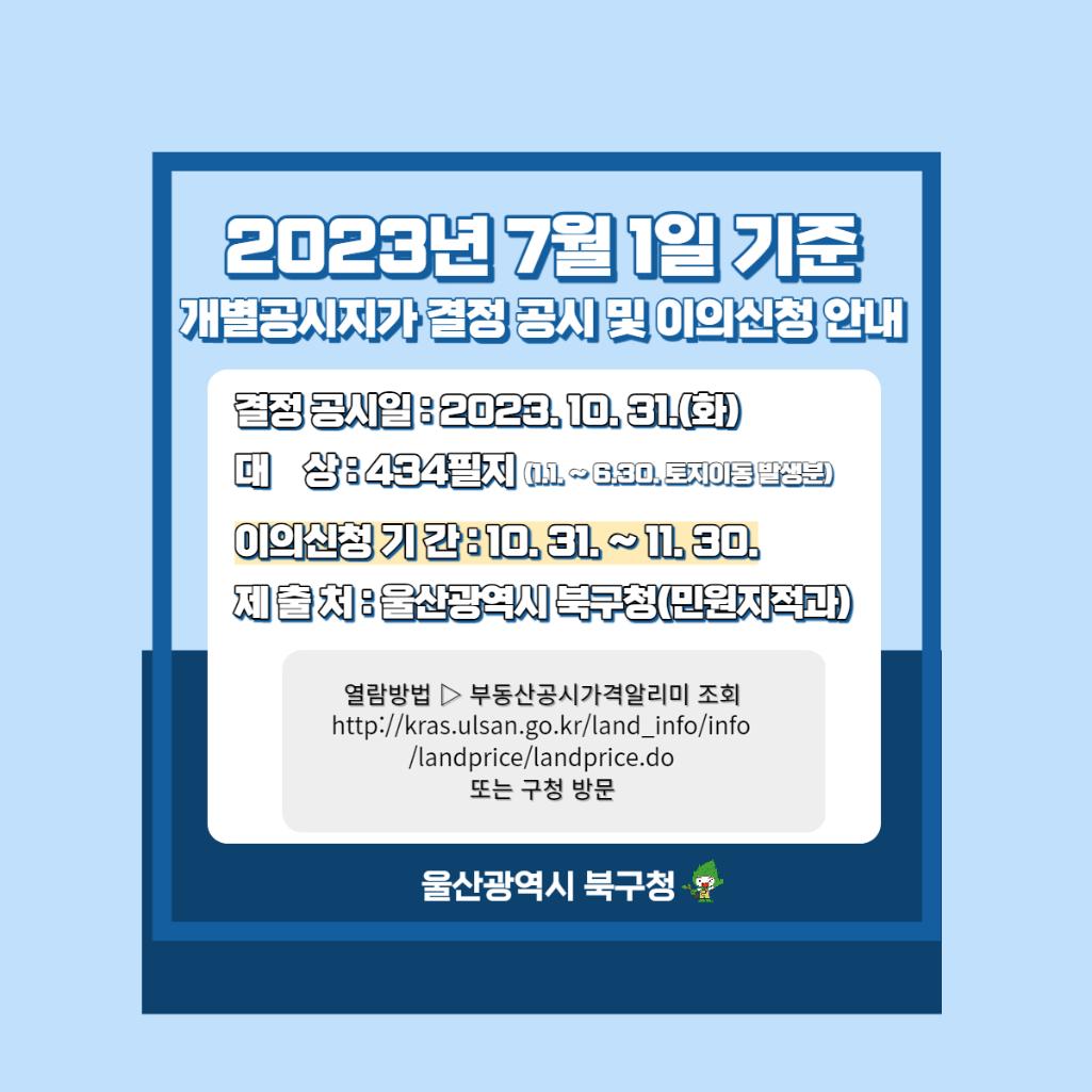 2023. 7. 1.기준 개별공시지가 결정·공시 및 이의신청