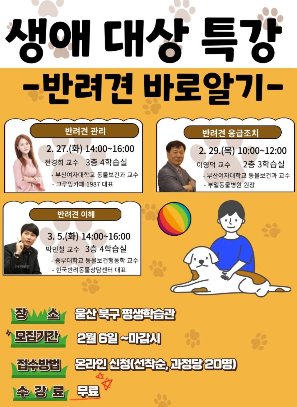 2024 생애 대상별 특강 운영 "반려견 바로알기" 수강생 모집 안내