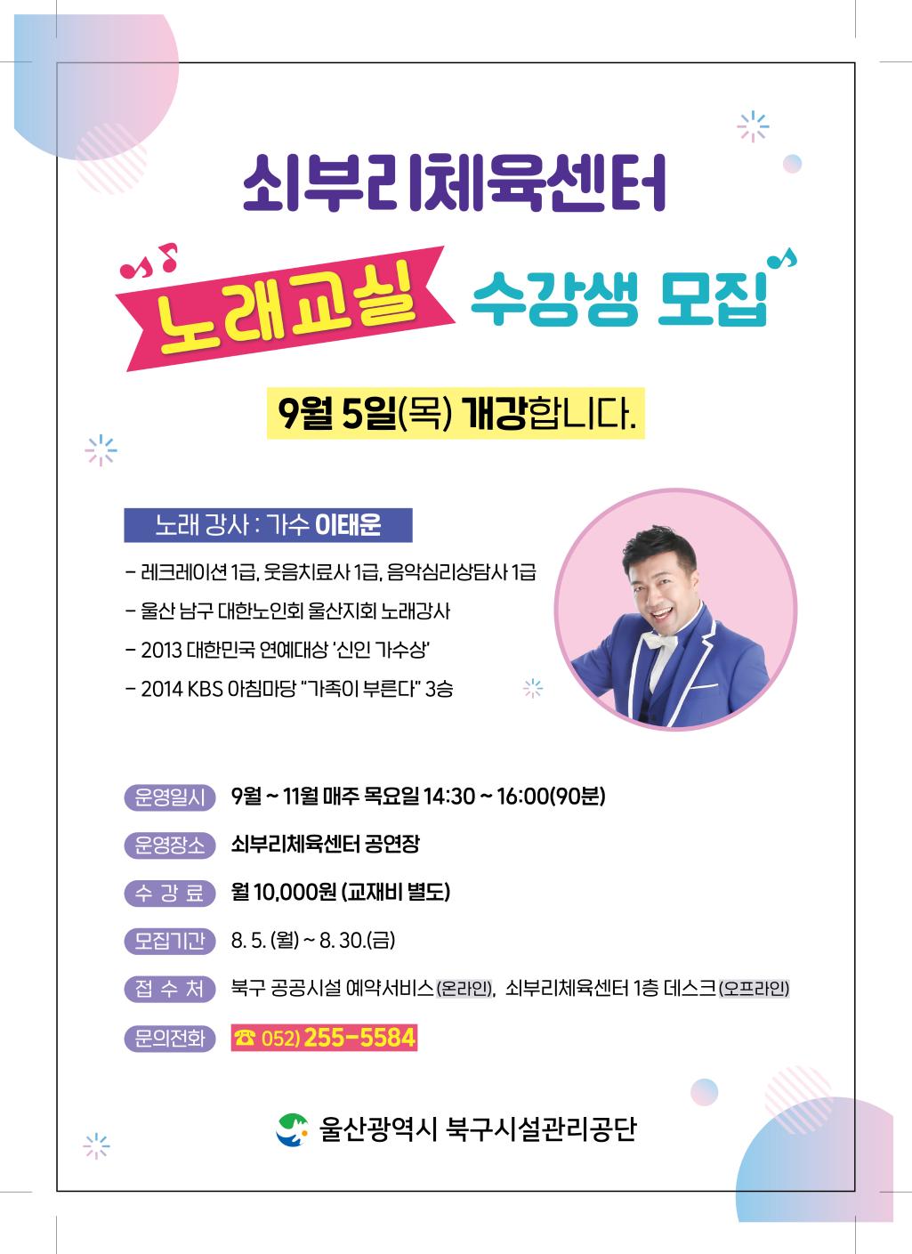 쇠부리체육센터 노래교실 수강생 모집