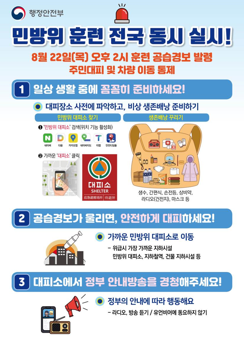 2024년 민방위 훈련 실시 안내(8. 22. (수) 오후 2시부터 20분간)