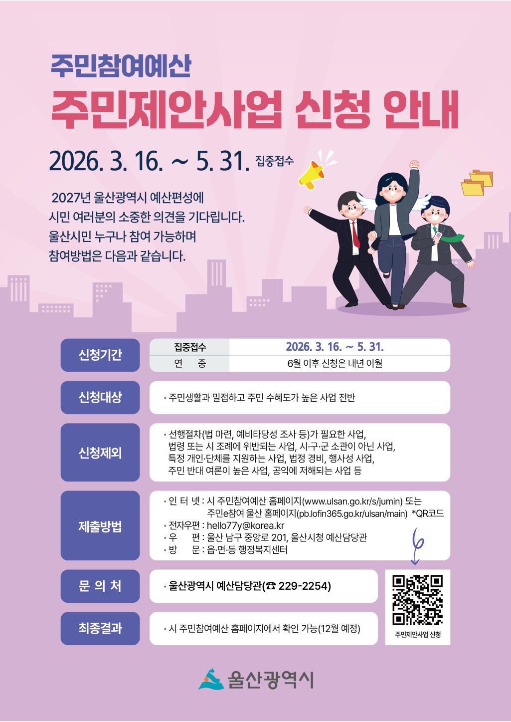 울산광역시 주민참여예산 주민제안사업 신청 안내