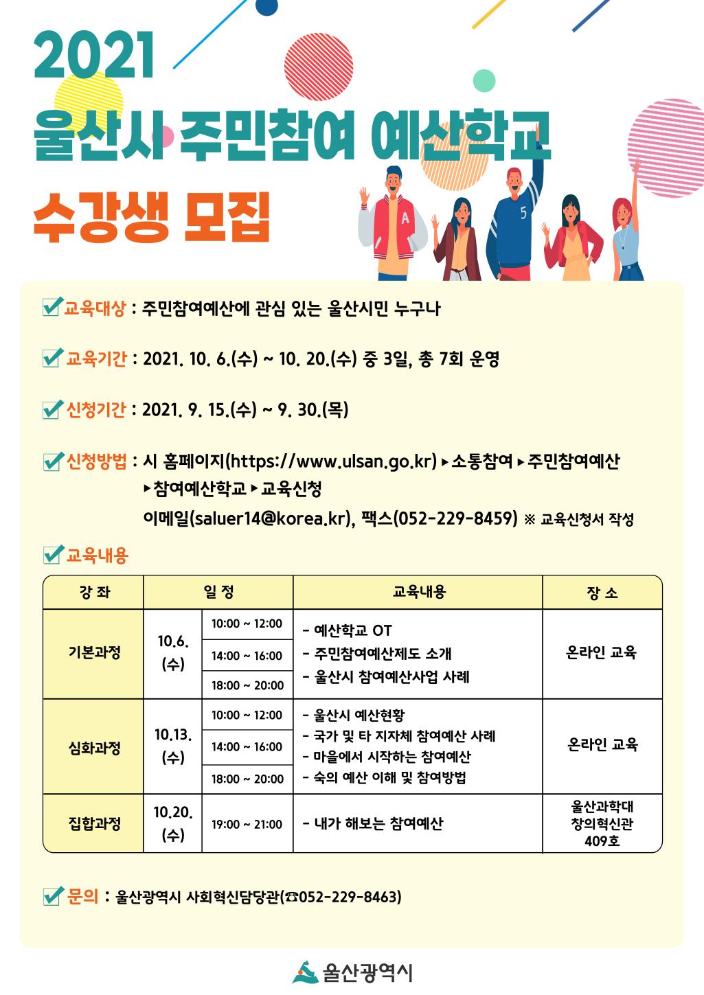 2021년 하반기 주민참여 예산학교 운영 안내
