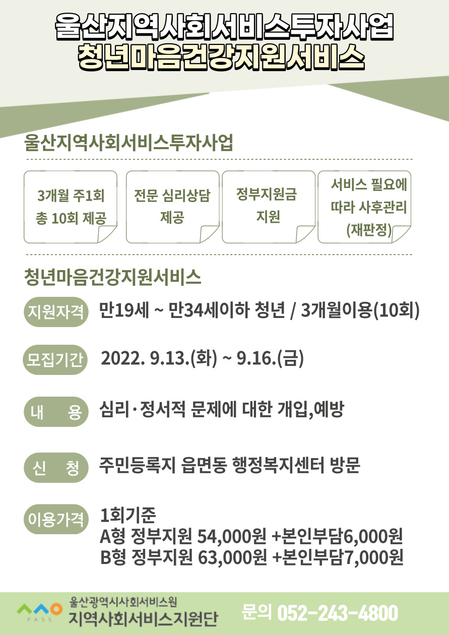 | 2022년도 지역사회서비스 투자사업 이용자 2차 추가모집(청년마음건강지원사업) | |||||