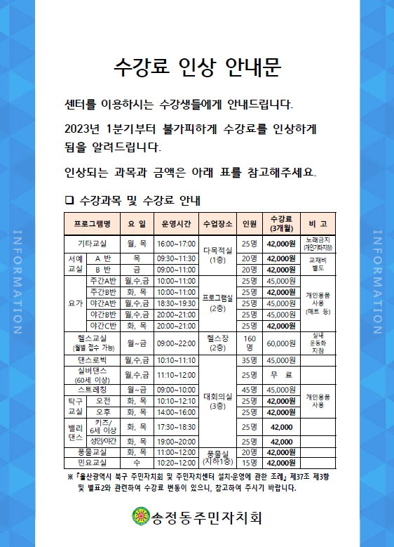 2023년 제1분기 주민자치센터 프로그램 수강생 모집