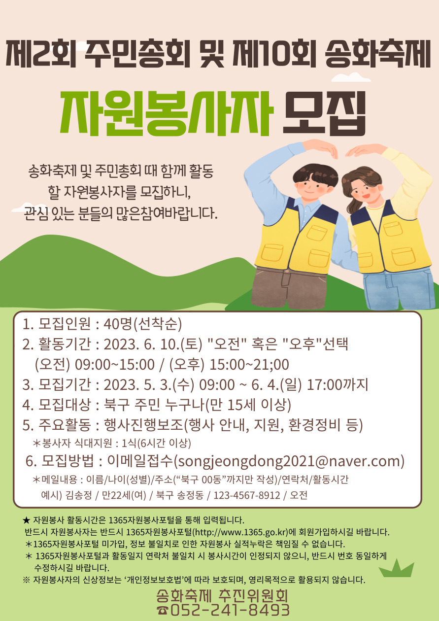 제2회 주민총회 및 제10회 송화축제 "자원봉사자 모집"