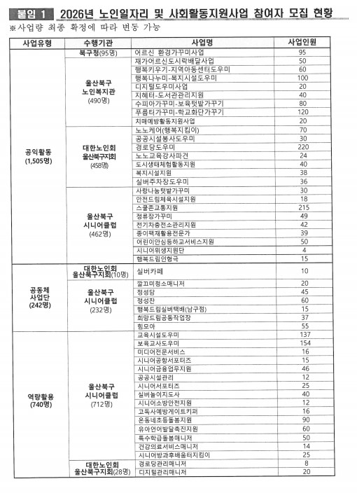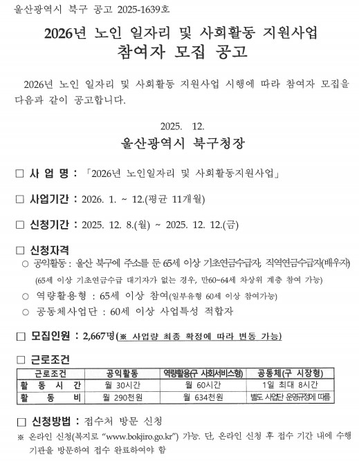 2026년 노인일자리 참여자를 모집하오니 많은 참여 바랍니다.