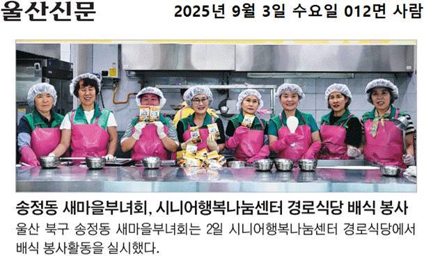 송정동 새마을부녀회, 시니어행복나눔센터 경로식당 배식 봉사