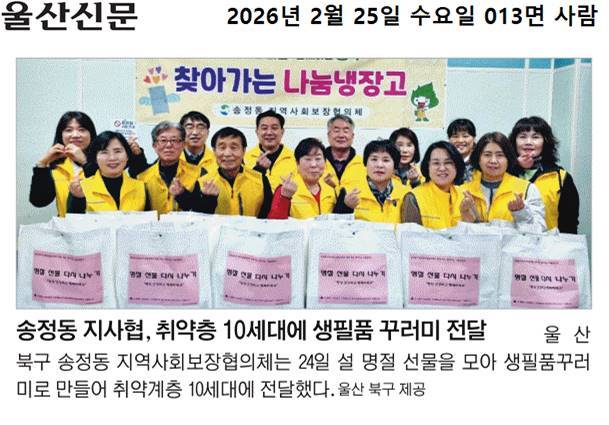 송정동 지역사회보장협의체 생필품꾸러미 나눔
