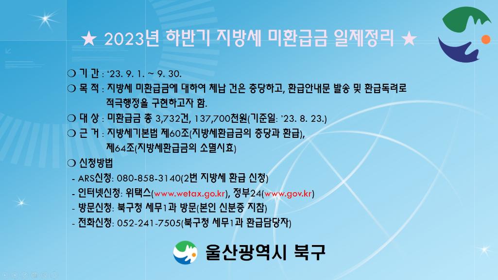 2023년 하반기 지방세 미환급금 일제정리 홍보