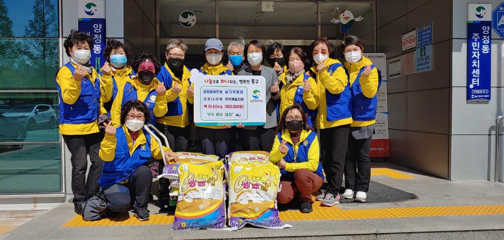★ 양정동 바르게살기위원회(회장 허영희)는 4.22.(수), 코로나19 극복을 위한 취약계층 지원의 일환으로 백미(400,000원 상당) 및 밑반찬을 양정동 오치골 나눔곳간에 기부하였습니다. 감사드립니다.~^^