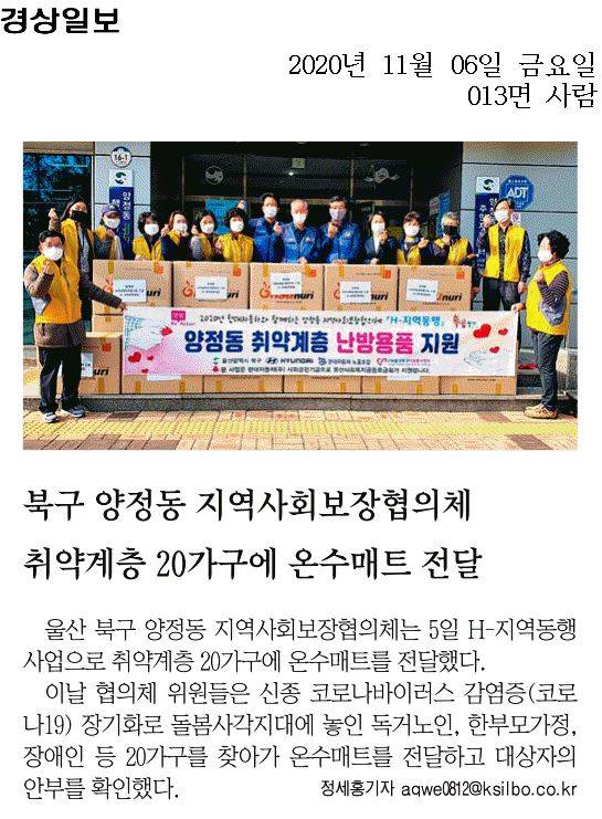 양정동 지역사회보장협의체 취약계층 난방용품 지원