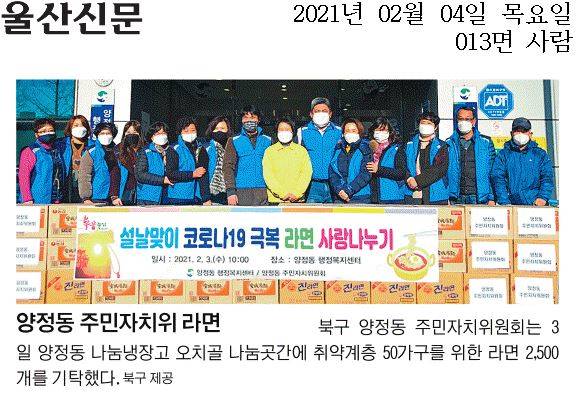 양정동 주민자치위원회 설날맞이 코로나19 극복 라면 사랑나누기