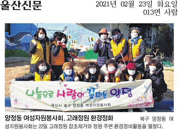 양정동 여성자원봉사회 꽃단지(고래정원) 환경정화 실시