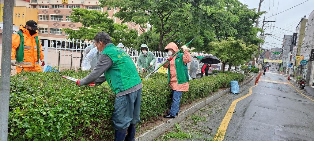 양정동 새마을부녀회.협의회는 5. 20.(목) 10시부터 양정초 앞 꽃단지의 나무 전지와 잡초 제거를 실시하였습니다.