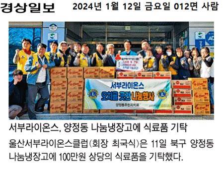 울산서부라이온스클럽, 양정동 나눔냉장고에 식료품 기탁