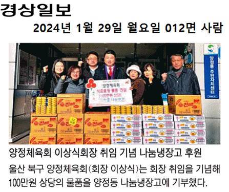 양정체육회, 양정동 나눔냉장고에 물품 기탁