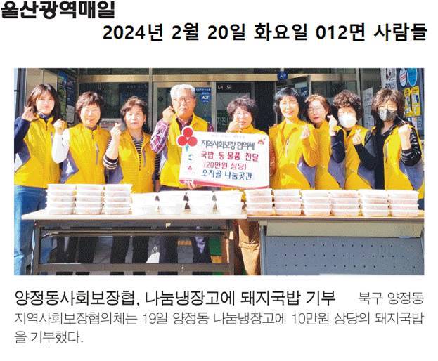 양정동 지역사회보장협의체, 나눔냉장고에 매월 돼지국밥 기탁