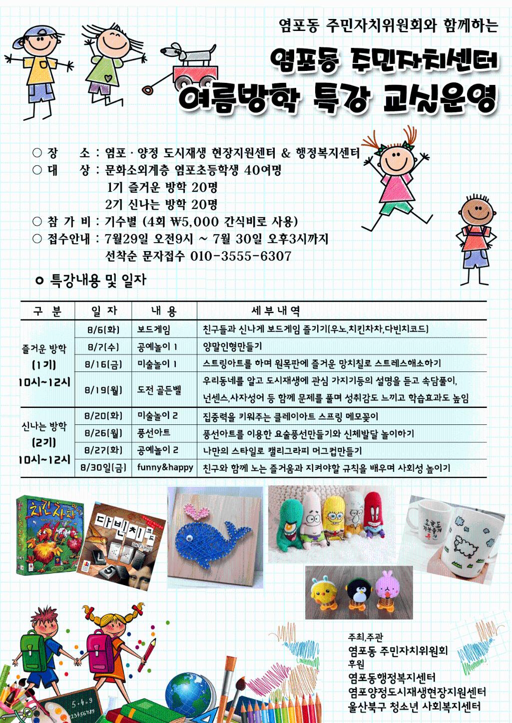 주민자치센터 여름방학 특강 교실운영 안내