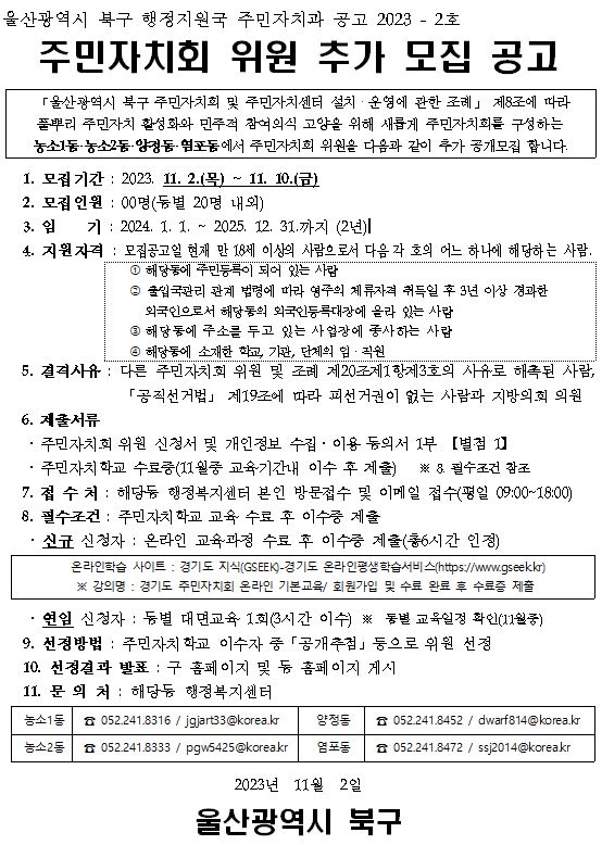 | 2기 염포동 주민자치회 위원 추가 모집 안내(~11/10까지) | |||||