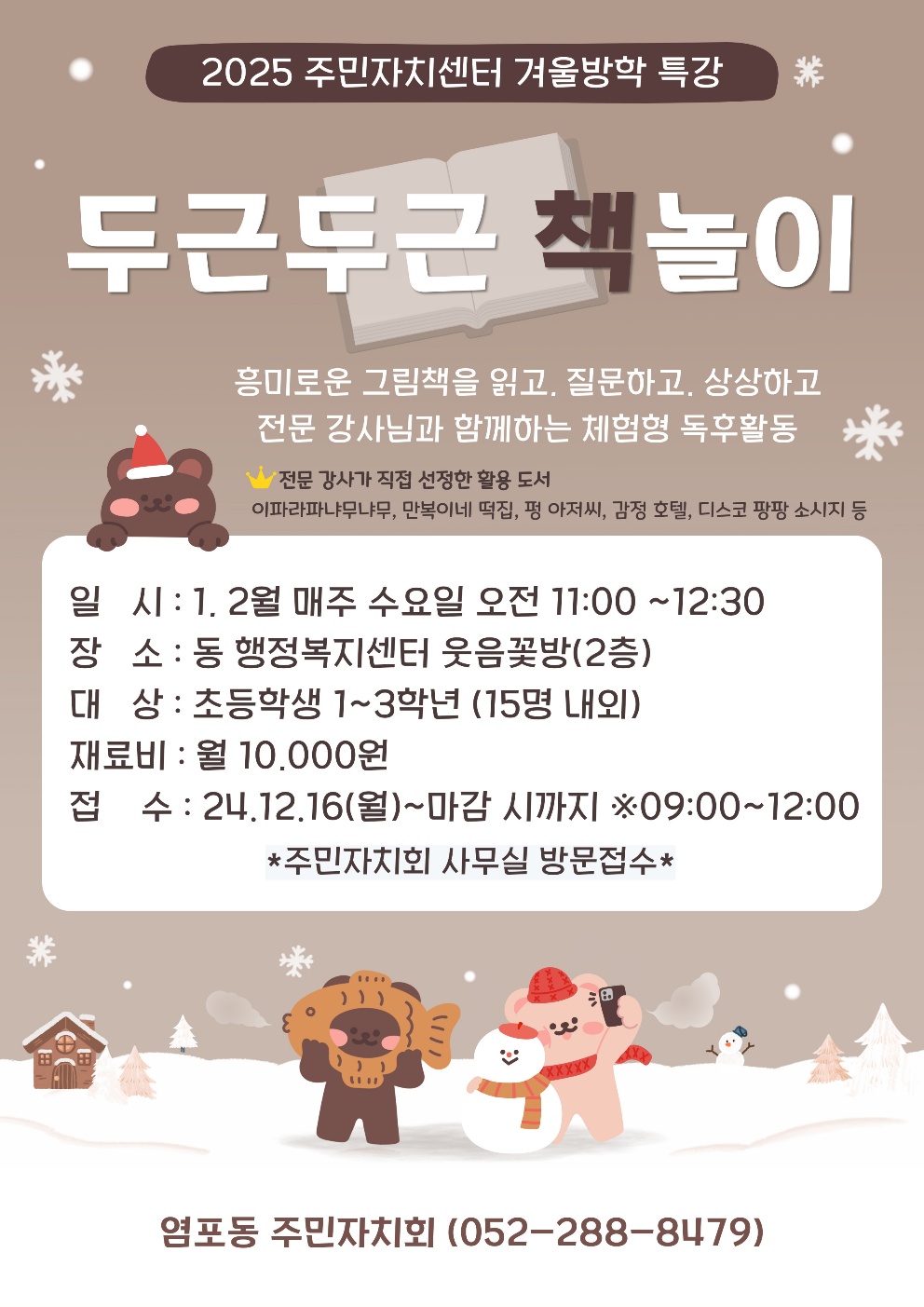2025년 주민자치센터 특강프로그램 모집 안내(접수 : 12/16부터~)