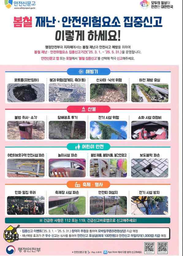 봄철 재난안전 집중 위험요소 이렇게 신고하세요