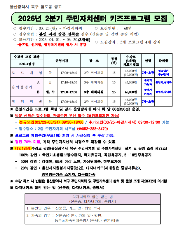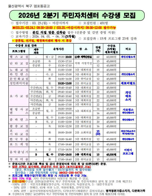 2026년 2분기 주민자치센터 수강생 & 키즈프로그램 모집